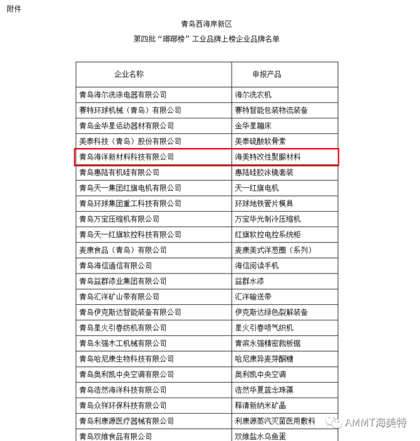 青島海洋新材料以自主研發(fā)的“海美特改性聚脲材料”申報青島西海岸新區(qū)第四批“瑯琊榜”工業(yè)品牌評選活動,經(jīng)過層層評選,榮獲“瑯琊榜”工業(yè)品牌企業(yè)榮譽稱號。此榮譽的獲得,是對海美特企業(yè)實力和產(chǎn)品技術(shù)的肯定。