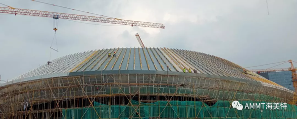 場(chǎng)館整體以“星際漩渦”為設(shè)計(jì)理念,總建筑面積約8萬(wàn)方,擁有座位4087個(gè),其中以設(shè)計(jì)聚脲作為防水的區(qū)域面積為1.5萬(wàn)平米。青島海洋新材料科技有限公司聚脲材料成為電競(jìng)館屋頂防水唯一指定聚脲材料。